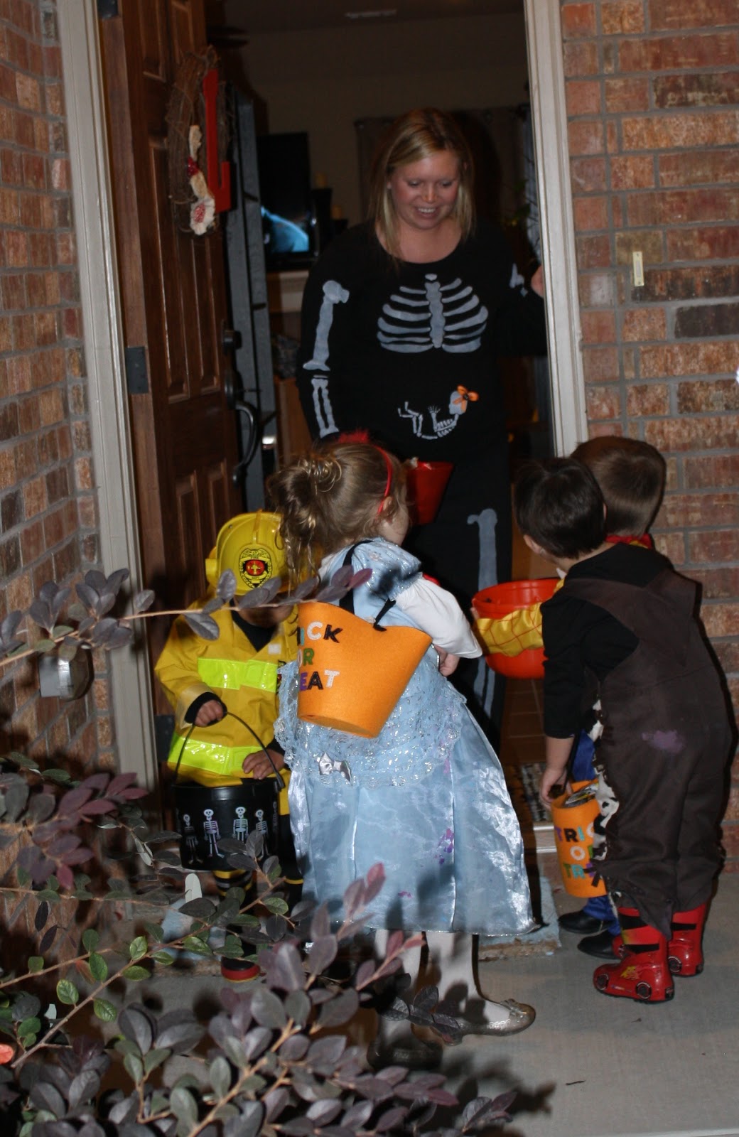 "Trick-or-treat!" or "Happy Halloween!" I will say I was so proud that all of our kids said, "Thank you!" at each house. LOVE when I hear those sweet words!